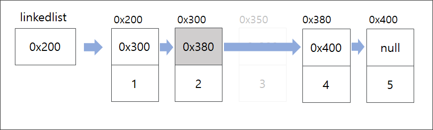연결리스트는 각 요소가 따로 다음 요소에 대한 참조값을 가지므로 이것만 수정해주면 되는 것이다.