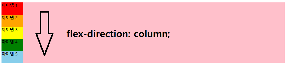 'column'을 속성값으로 줄 경우 아이템이 수직 정렬되고 아이템은 위에서 아래로 정렬된다.