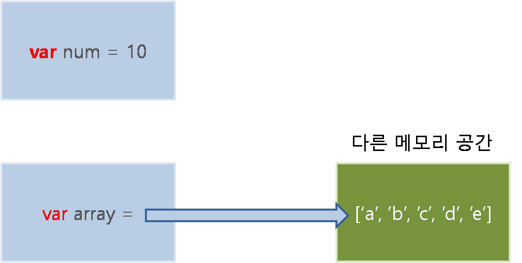 하지만 객체 자료형의 경우 변수가 다른 메모리 공간에 저장된 값을 참조하여 사용자에게 보여주는 것이다.