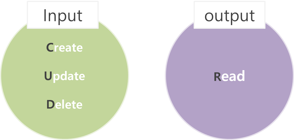 자료의 생성, 갱신, 삭제는 데이터에 입력을 해주고, 데이터는 읽을 수 있는 데이터를 제공한다.