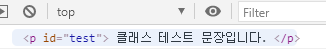 <script> var test = document.getElementsByTagName('p')[0]; // html에서 해당 요소 모두 선택 console.log(test); // "<p> 클래스 테스트 문장입니다. <p>" 출력 </script>하지만 뭔가 조잡하다.