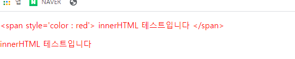 <span style='color : red'> innerHTML 테스트입니다 </span>