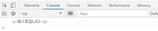 콘솔에서 생성한 <p>를 출력해보면 다음과 같다.