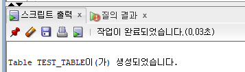 성공적으로 테이블이 완성되었다면 아래와 같은 문장이 스크립트에 출력된다.
