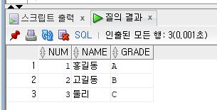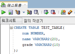 예를 들어 위와 같은 성적 관리 테이블을 만든다면 아래와 같이 쿼리를 입력하면 된다.