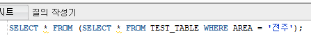 위 쿼리는 서브쿼리를 적용해서 전주에 사는 사람만 골라낸 SELECT 문이다.