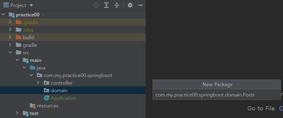 domain패키지를 생성했다면 다음은 위와 같은 경로로 domain패키지 안에 posts 패키지를 생성한다.