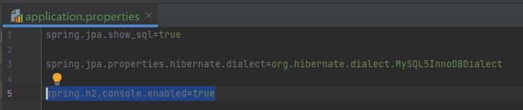 위와 같이 "spring.h2.console.enabled=true"를 입력한다.