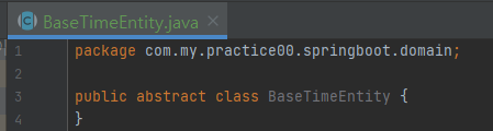 우선 "/src/main/java/com/my/practice00/springboot/domain"에 "BaseTimeEntity"클래스를 만든다.