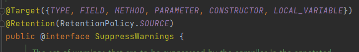 위의 캡쳐는 @SuppressWarnings의 소스코드다.