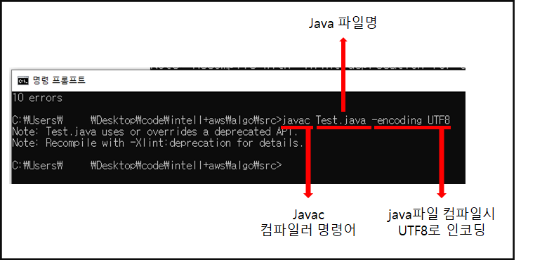 명령 프롬프트를 통해 컴파일해도 이제 경고 메시지가 없이 컴파일이 완료된 것을 알 수 있다.