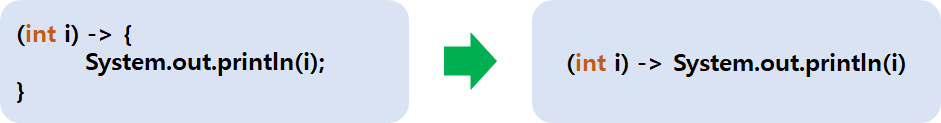 하지만 람다식의 목적이 간략 표현이므로 여기서 추가적으로 더 간략하게 표현이 가능하다.