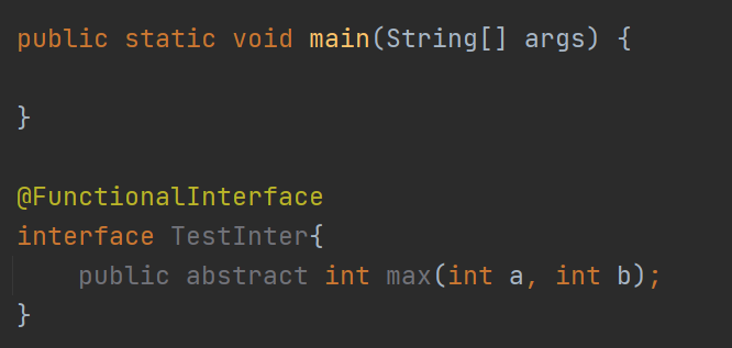 함수형 인터페이스를 만들었다면 그 안에 max() 메서드를 선언해준다.