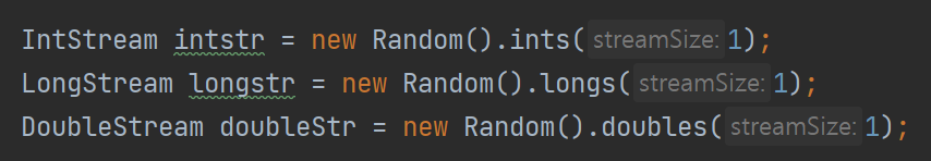그럴때는 위 코드처럼 랜덤 클래스의 객체를 생성 후 각 기본 타입별의 스트림을 반환하는 메서드를 사용하면 된다.