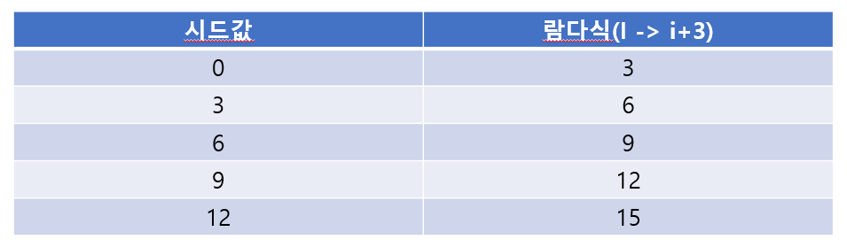 위의 코드를 보면 람다식으로 초기값으로 숫자 0을 제공하고 람다식으로는 매개변수로 전달된 수에 3을 더하도록했다.