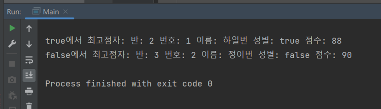 위 코드의 경우 최고점을 받은 사람을 뽑는 것이므로 getScore()를 통해 각 학생들의 점수를 불러온다.