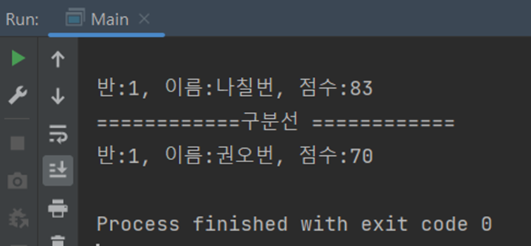 그 뒤에 key값을 기준으로 학생 정보를 출력한 결과는 위와 같다.