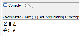 public class Test { public static void main(String[] args) { Son person1 = new Son("손흥민", 15); System.out.println(person1.name); System.out.println(person1.call_name()); } }위 코드를 실행하면 다음과 같은 결과를 얻을 수 있다.