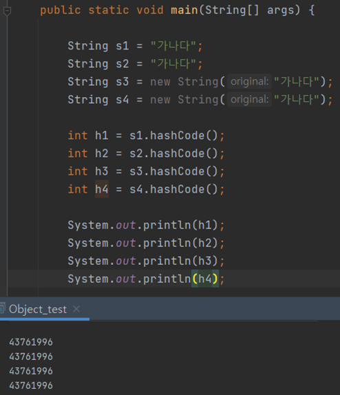 그렇다면 위의 4개의 객체의 해시코드는 어떨까?