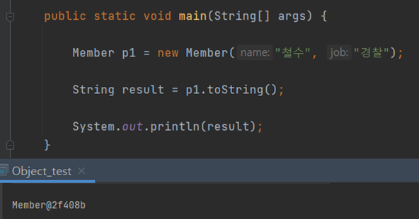 이전의 예시들과 똑같이 Member 객체를 이용해 toString() 메서드를 사용보았다.