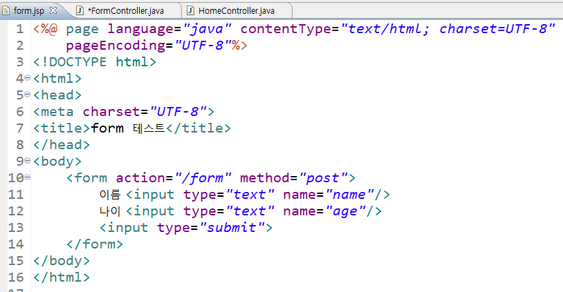 form.jsp파일을 위와 같이 작성해준다.