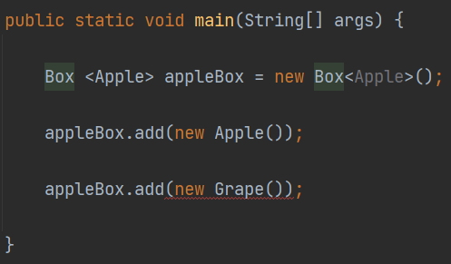 당연히 Apple로 저장 가능 타입을 제한하면 형제인 Grape 클래스의 객체는 저장 불가한 것을 볼 수 있다.