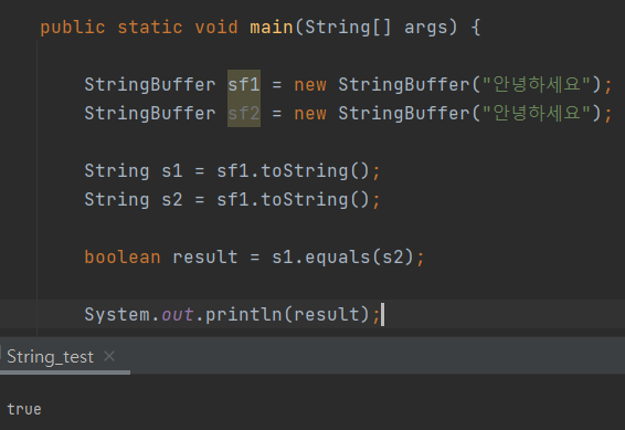 위와 같이 StringBuffer를 String으로 변환해서 비교하면 편리하게 비교할 수 있다.